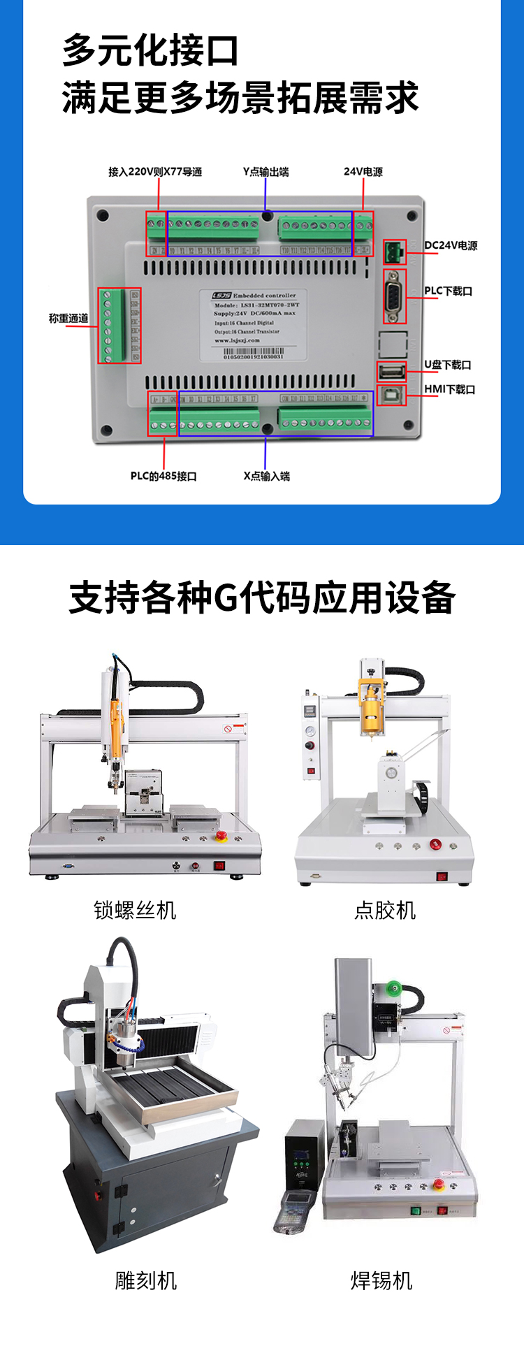 多轴G代码7寸10寸触摸屏数控控制器点胶雕刻钻孔攻丝机可二次开发