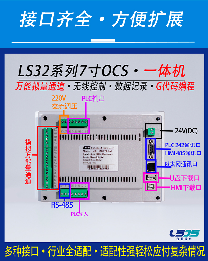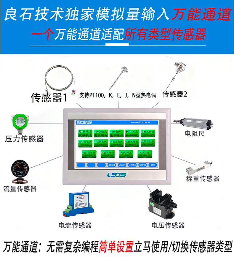 7寸PLC触摸屏一体式可编程控制器万能通道模拟量输入24位高精度ADC采样电压电流温度称重提供样例技术支持代编程序厂家供应